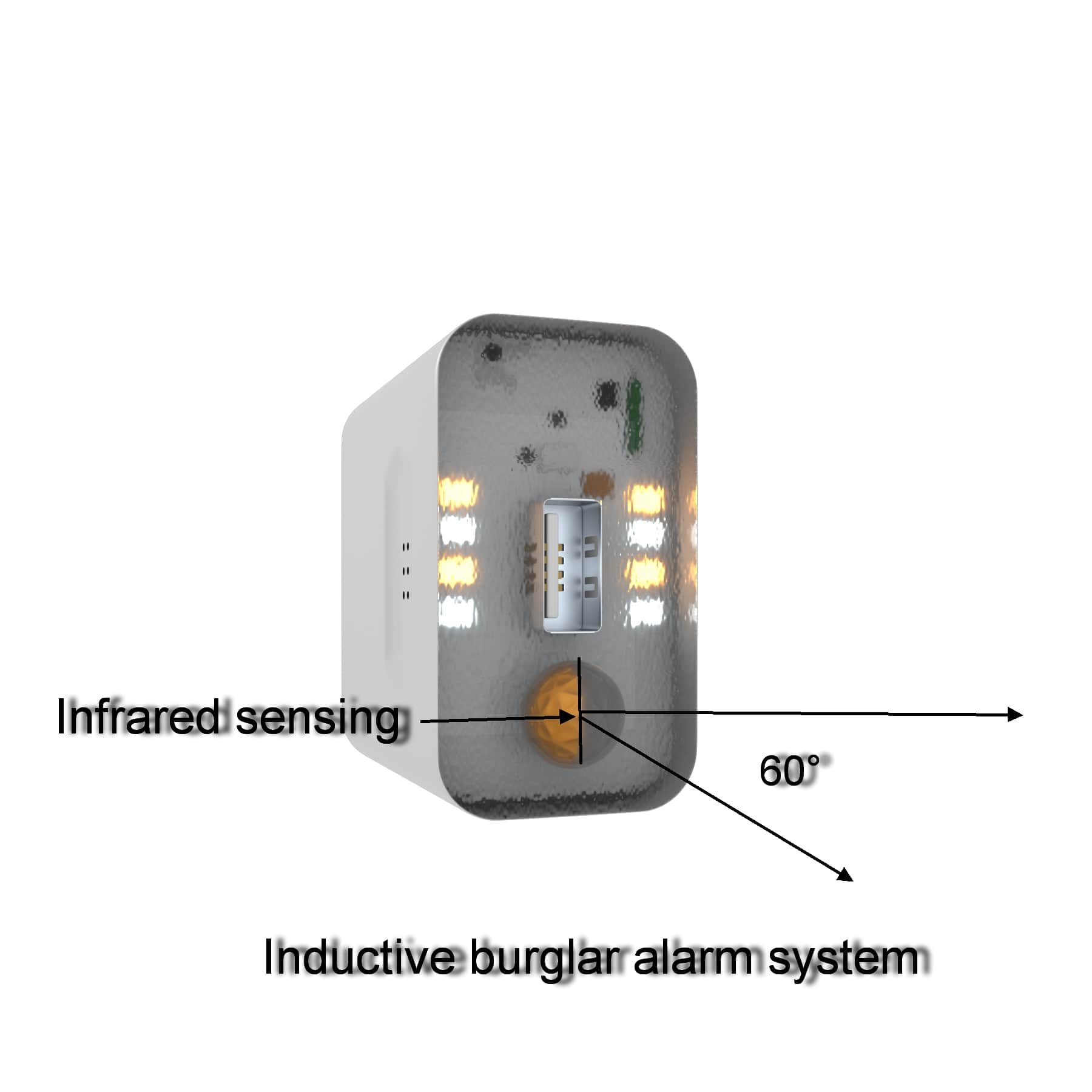 - The sensor device of the sensor anti-theft alarm system is shared with the sensor night light. It is an infrared sensor with an effective distance of 4 meters (the maximum sensing distance is 10 meters, but it is unstable). The sensing angle is 60 degrees, which is the half area without plating on the cover of the infrared sensing device, which is the same as the sensing area of the induction night light.