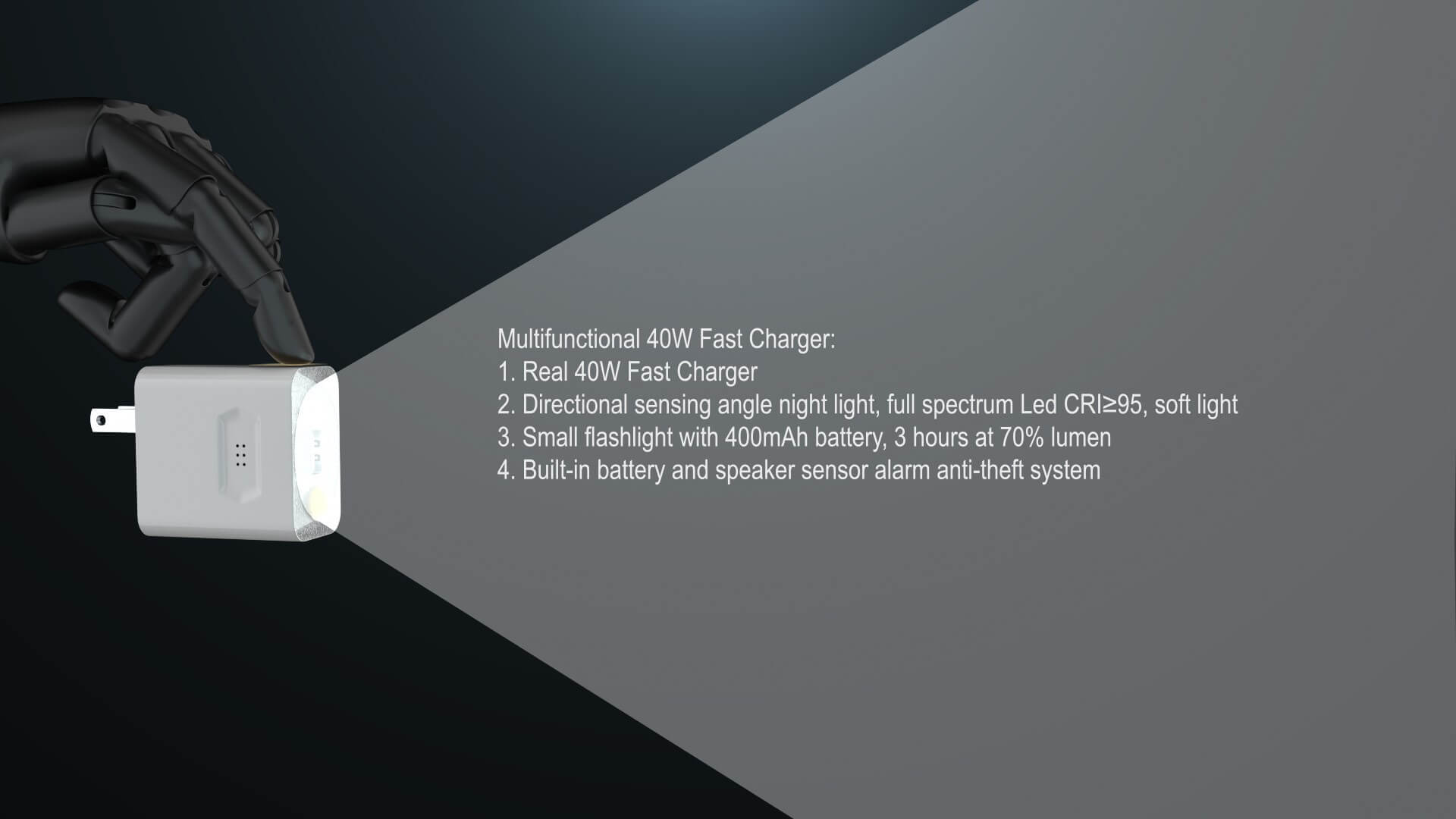 This new smart sensor night light fast charging charger has the following features when used as a flashlight: